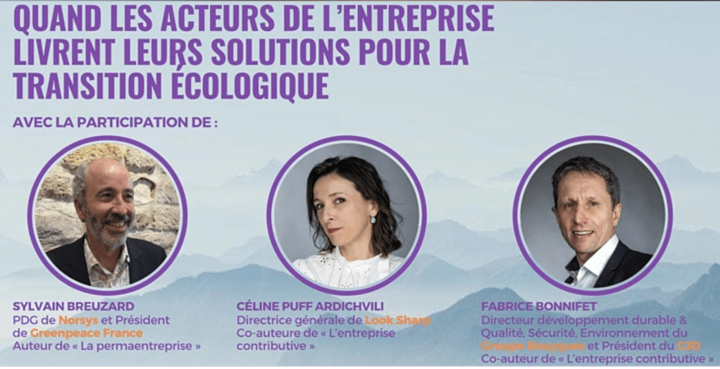 - Puis une table ronde avec Catherine Chazal, Directrice RSE et mécénats, Axa ; Stanislas Pottier, Directeur de l’investissement responsable, Amundi ; Fabrice Bonnifet, Président du C3D, Collège des Directeurs du Développement Durable, et Directeur Développement Durable & Qualité, Sécurité, Environnement, Groupe Bouygues, a permis de discuter des conditions et leviers vers des modèles d’affaires plus durable, un parti pris pour la transformation des entreprises. Cette conférence a été animée par Céline Puff Ardichvili, DG et associée, Look Sharp.