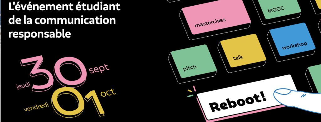 Les 31 septembre et 1er octobre 2021, nous participons à Reboot!, événement organisé par un collectif de professionnels engagés. Nous soutenons l’événement parce que nous pensons que ces sujets d’entreprise contributive passent par des professionnels formés aux enjeux… et en particulier les professionnels de la communication.